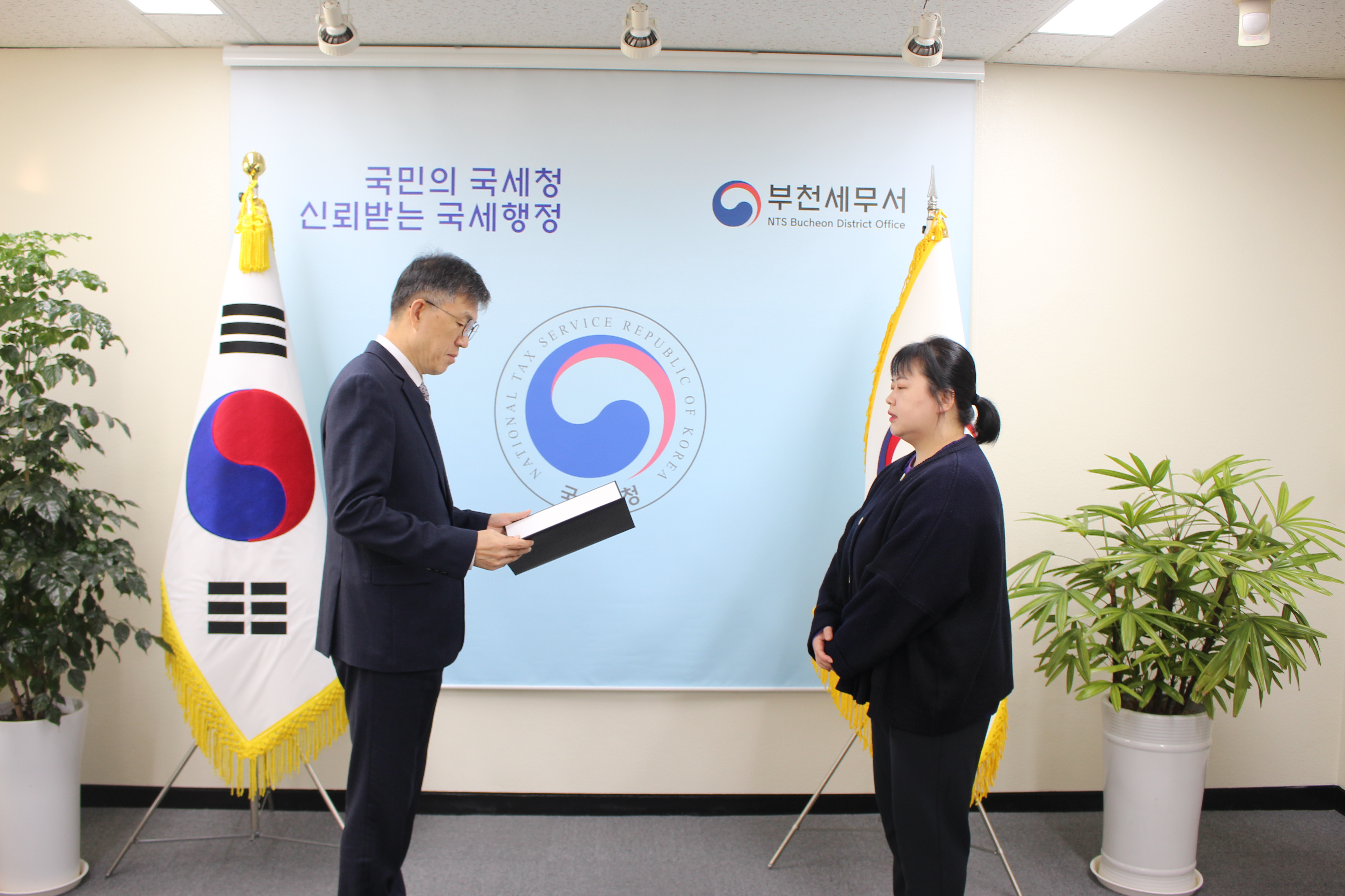 부천세무서는 매달 우수직원을 선정하여 이달의 부천인 시상식을 진행하고 있으며,