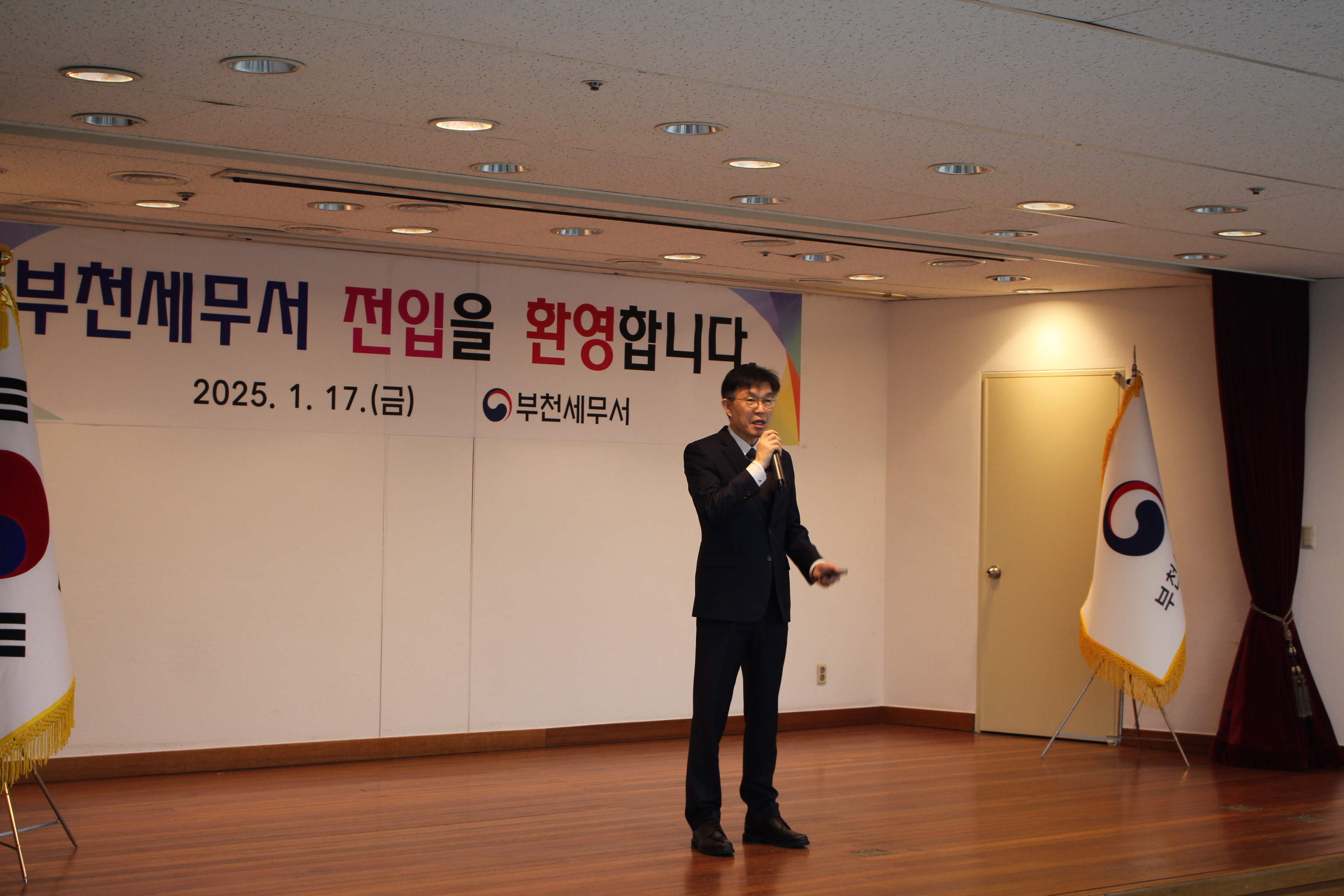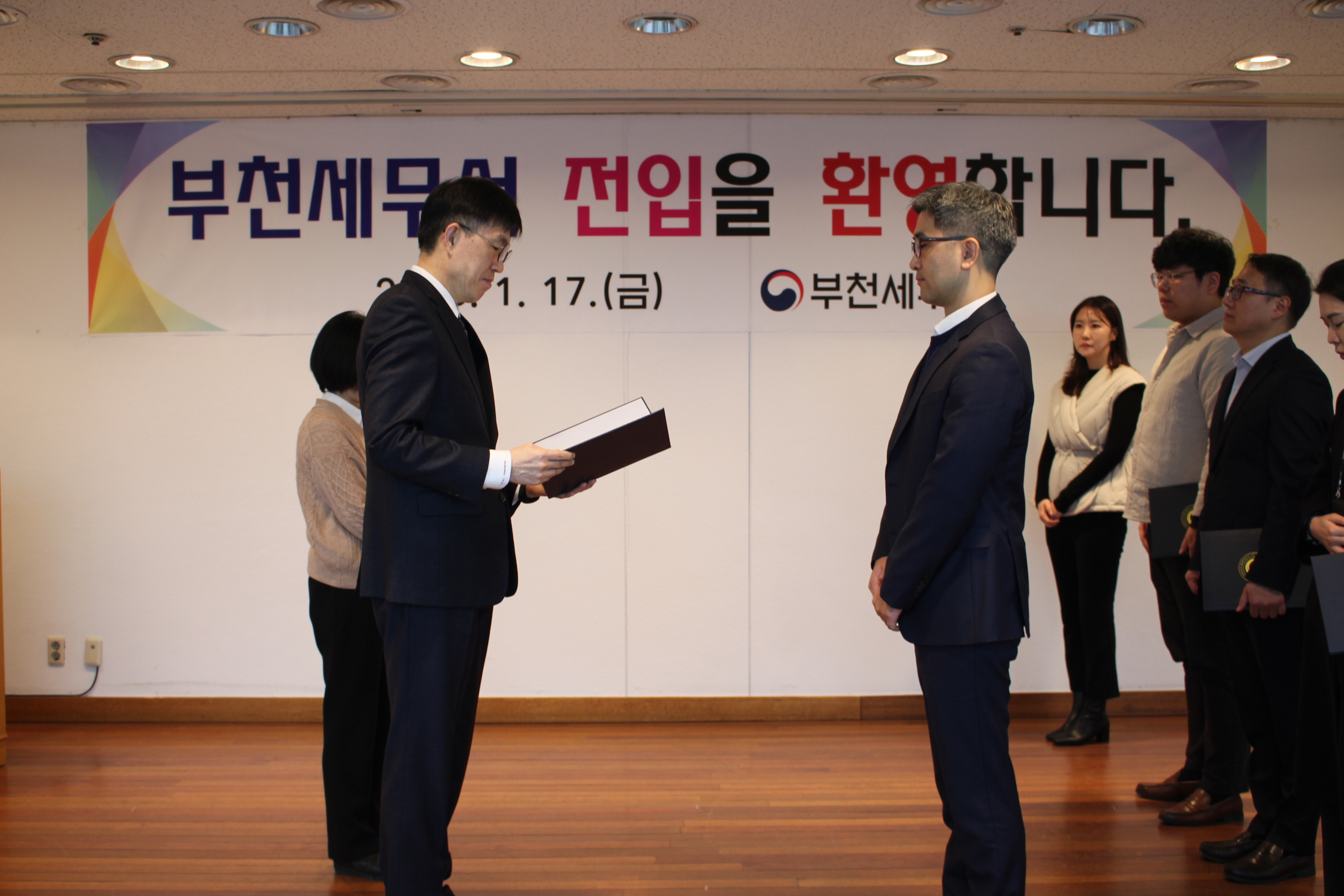 부천세무서(서장 김영기)는 2025. 1. 17.(금) 우리 서에 전입한 직원들에 대한 인사발령통지서 수여식을 진행하였습니다.