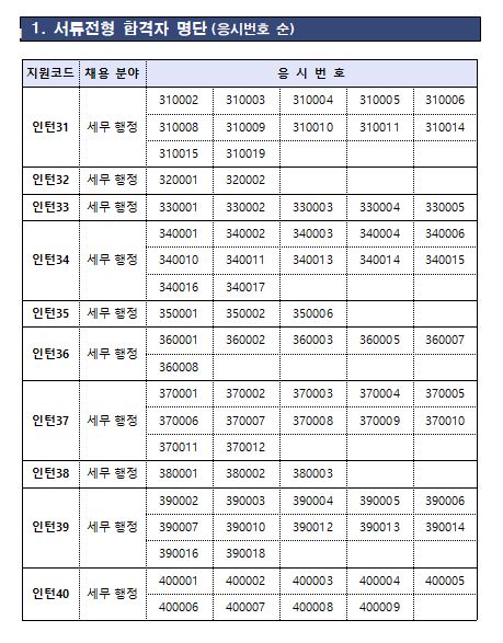 인천지방국세청 공고 제2025-4호(2025.2.17.)에 따라 실시한 인천지방국세청 청년인턴 채용 서류전형 합격자 명단 및 면접 일정 내용을 다음과 같이 공고합니다.