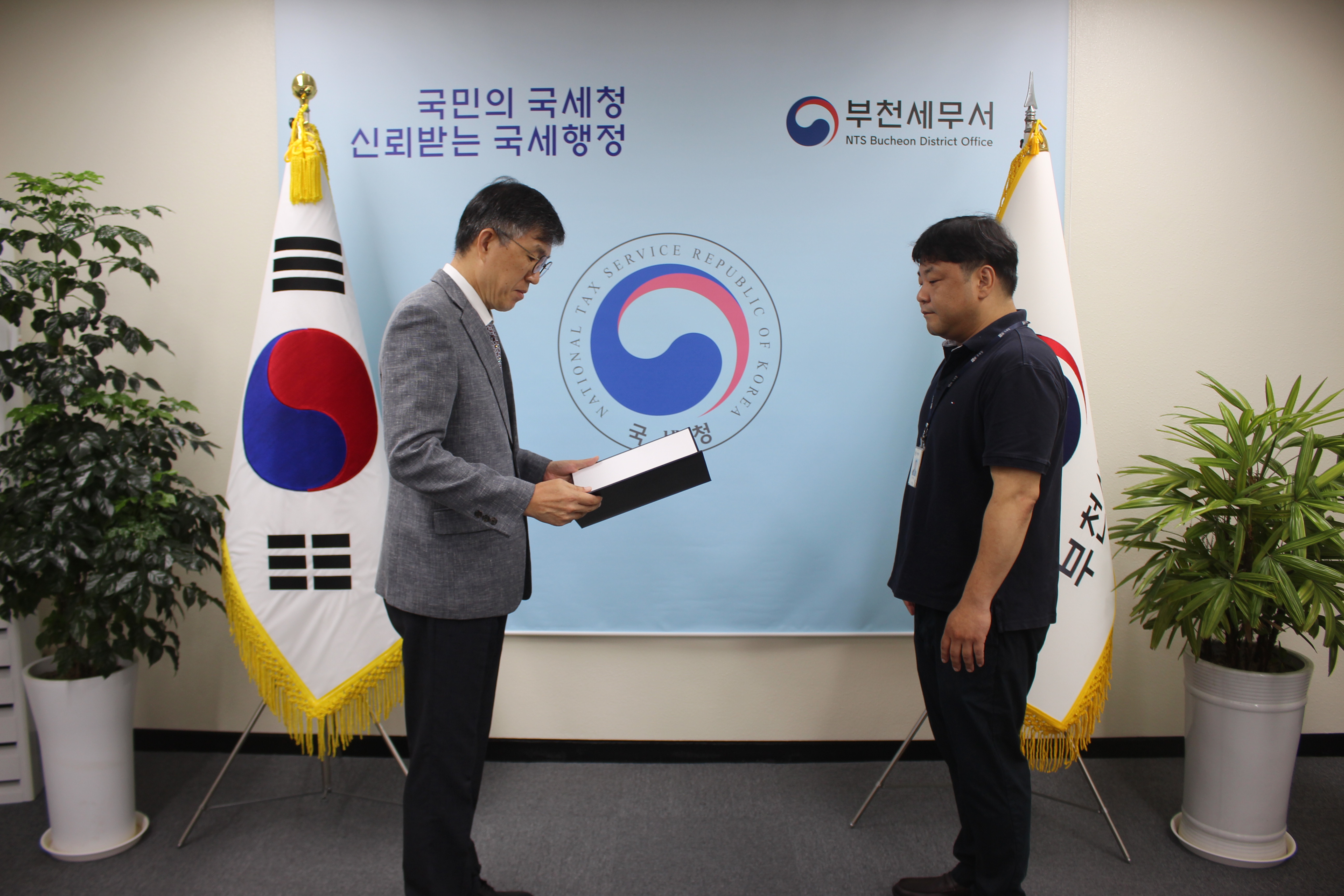부천세무서(서장 김영기)는 2025년 9월 1일 字로 복직한 직원에 대한 임명장 수여식을 진행하였습니다.