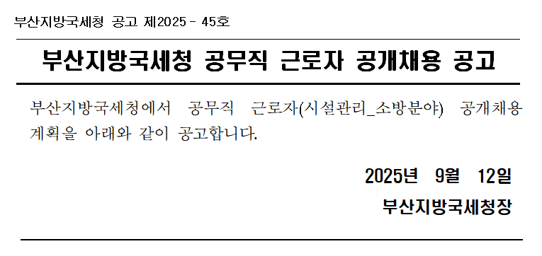 1.부산지방국세청 공무직 근로자(시설_소방) 채용 공고문.hwp