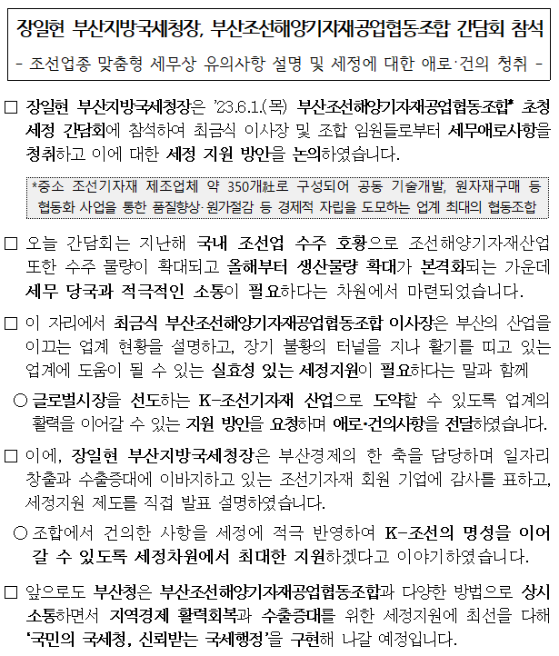 <장일현 부산지방국세청장, 부산조선해양기자재공업협동조합 간담회 참석>