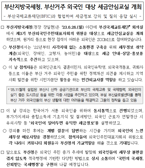 <부산지방국세청, 부산거주 외국인 대상 세금안심교실 개최>