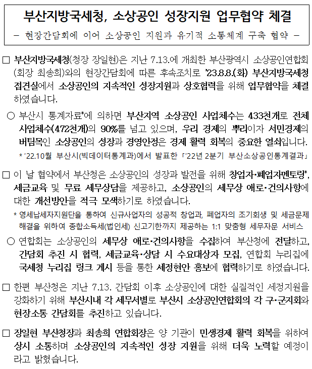<부산지방국세청, 소상공인 성장지원 업무협약 체결>
