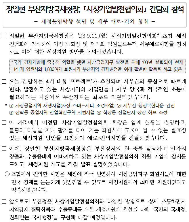 <장일현 부산지방국세청장, 「사상기업발전협의회」 간담회 참석>