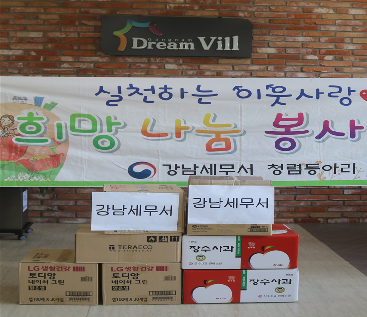 앞으로도 지속적인 사회공헌활동을 통해 이웃 사랑을 실천하는 강남세무서가 되겠습니다.