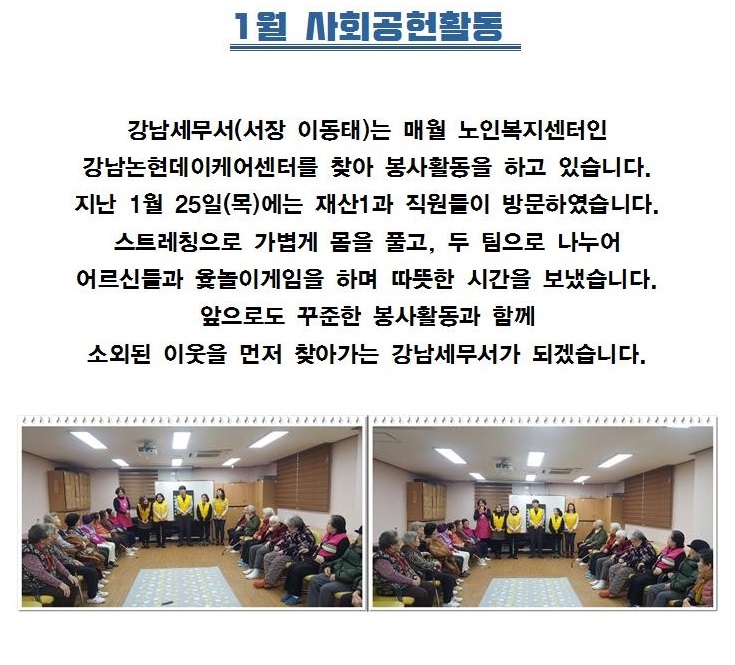 강남세무서, '강남 데이케어센터'를 찾아 나라사랑 봉사활동