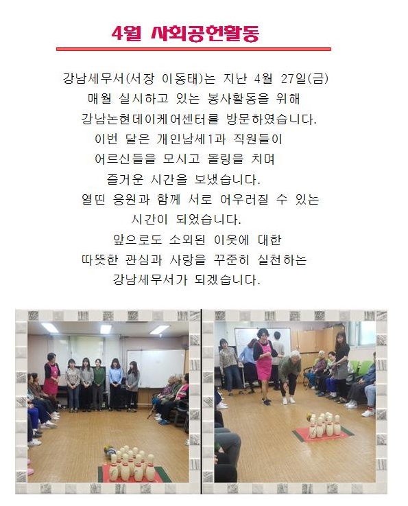 강남세무서, 강남논현데이케어센터를 찾아 이웃사랑나눔 실천