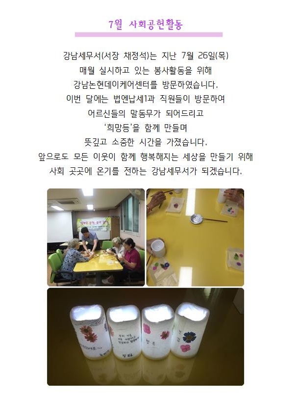 어르신들과 함께하는 사랑의 '희망등' 만들기