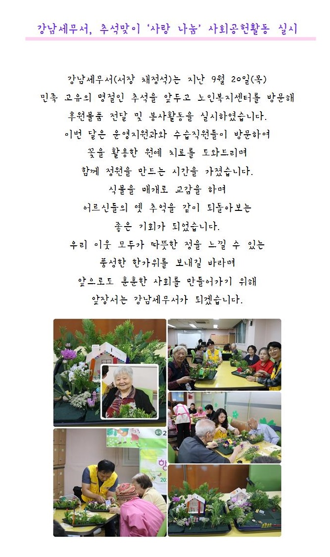 강남세무서, 추석맞이 ‘사랑 나눔’ 사회공헌활동 실시