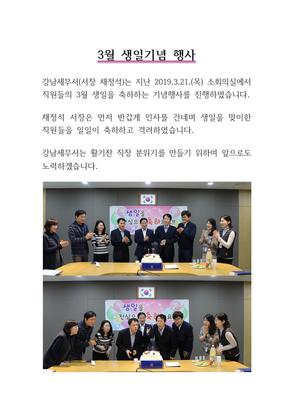 강남세무서, 3월 생일기념 행사