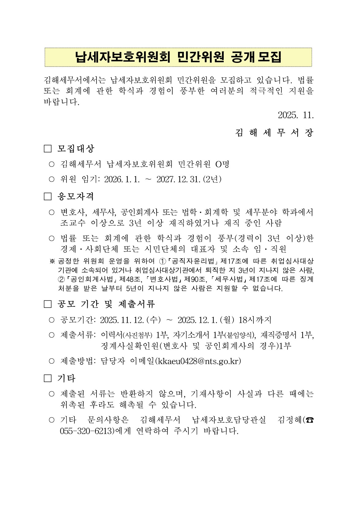 (공고문)납세자보호위원회 민간위원 공개 모집.hwpx