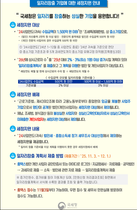 일자리창출 기업에 대한 세정지원 안내