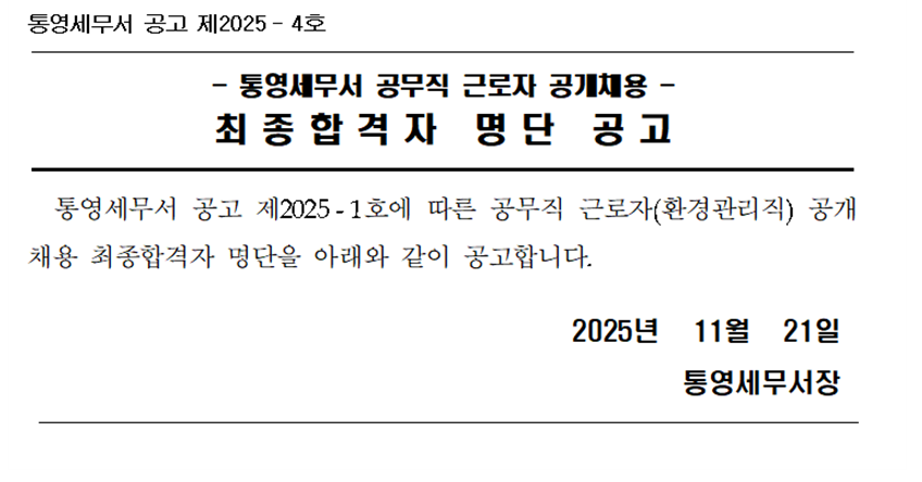 2025-4 통영세무서 공무직 근로자 공개채용 최종합격자 명단 공고.hwp