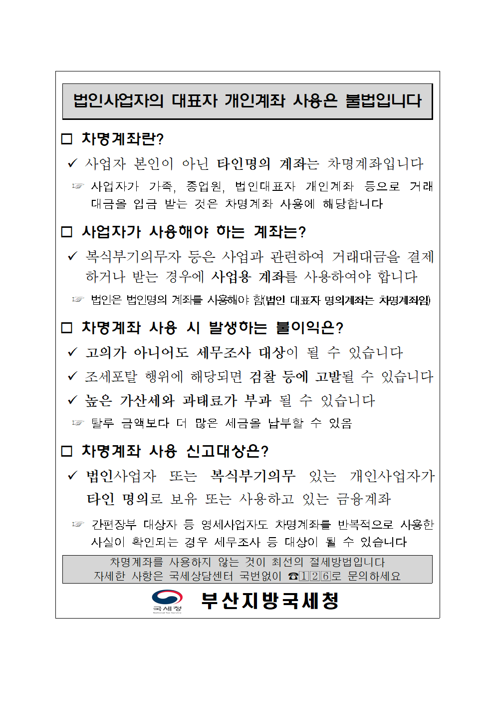 사업용 차명계좌 사용에 따른 불이익 안내